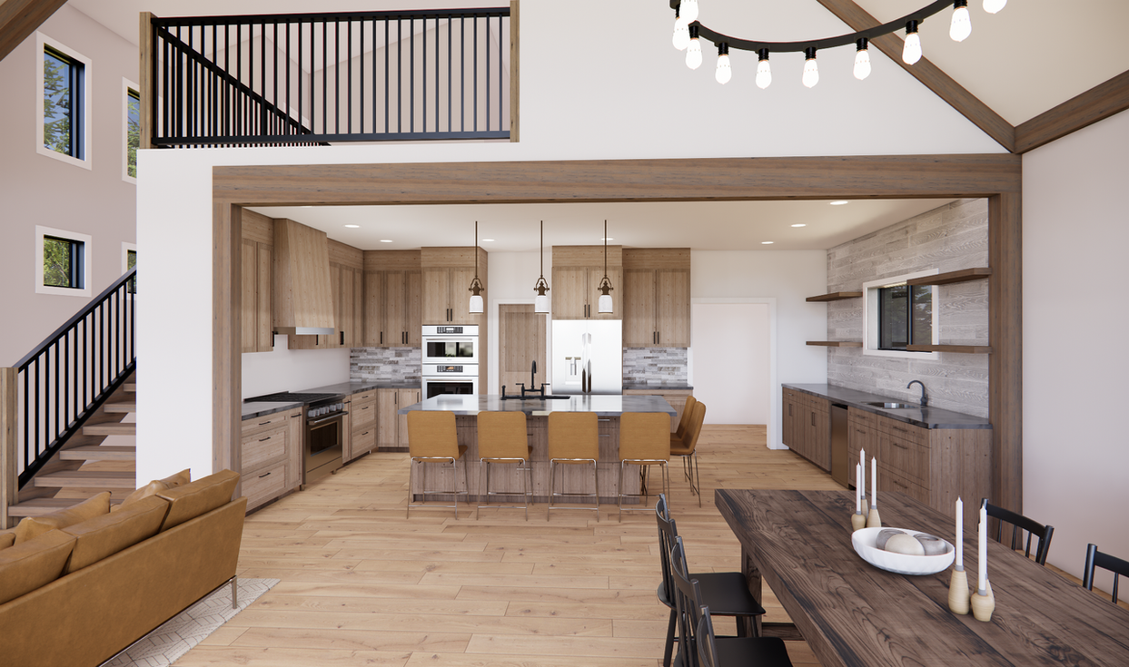 The Lodgepole Barndominium is the definitive plan for your acreage, merging modern farmhouse style with timeless, rugged design. The great room is a show-stopper, featuring vaulted timber-trussed ceilings and a stone fireplace that creates an impressive hub for entertaining.